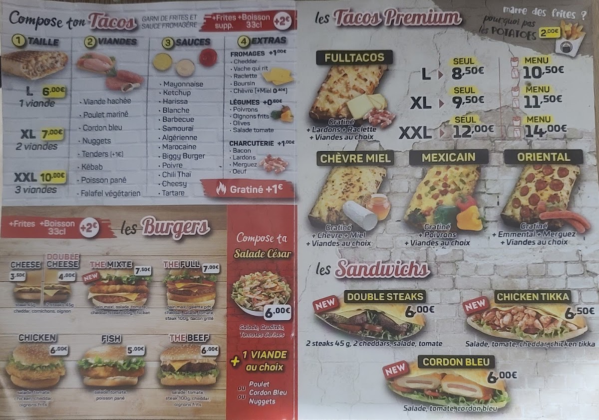 Welcome to Full Tacos, a vibrant fast food haven nestled in Montpellier at 53 Pl. Thermidor. This unique restaurant beautifully merges the essence of Mexican cuisine with the convenience of fast food, specializing in mouthwatering tacos, juicy burgers, and tasty fries.